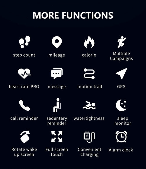 The Smart Fit Sporty fitness band is a complete multi-sports activity tracker health monitoring system. Track your blood pressure, heart rate, sleep quality, calorie expenditure, and receive alerts when you’ve been sitting for too long, or when it’s time for medication. Wear it while you walk or run to count your steps and track your distance. (All information can be accessed on your Smartphone via a free APP for all Apple and Android devices.)